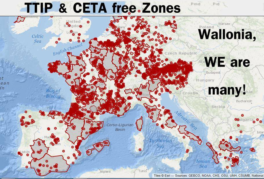 Une petite carte avec l'ensemble de toutes les collectivités locales qui ont prise une motion contre le CETA et le TAFTA. Et pourtant, malgré çà, les états se sont torché le cul avec et encore plus Bruxelles.