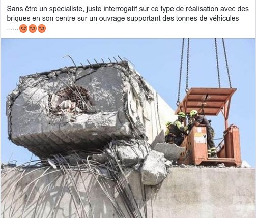 Une photo interpelle les ingénieurs sur l'effondrement du viaduc de Gênes. Que font ces briques au centre de la structure béton du pilier qui a cédé ?