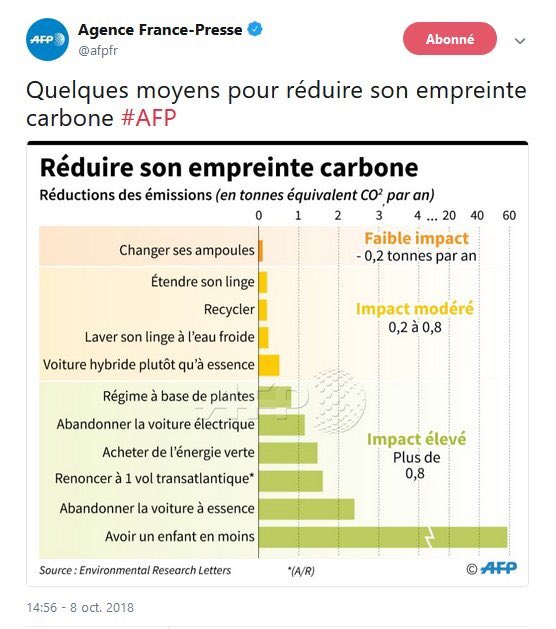 Voilas comment on préconise de réduire ses empreintes carbones. L'enfant de trop, noyez le..... Encore une fois, on vous fait culpabilisé comparativement a des vrais pollueurs de masse, qui eux, ont le bénéfice de l'"open bar".