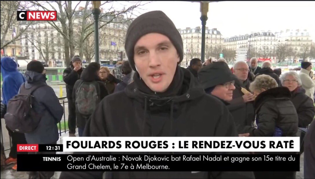 Forte mobilisation place de la Nation à Paris pour les #FoulardsRouges malgré la pluie, des #GiletsBleus et d'autres manifestants indépendants sont présents pour manifester contre les violences et les blocages dans le pays.— LCI (@LCI) January 27, 2019