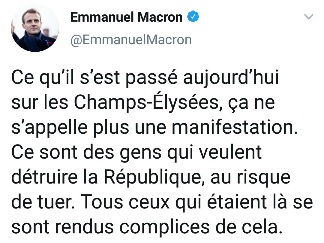 Et Macron, d'en rajouter dans l'amalgame et les raccourcis......Des gendarmes envoient des grenades lacrymogènes sur d’autres gendarmes. Les manifestants applaudissent. #Acte18 pic.twitter.com/lmbzbvipe0— En Cause (@EnCausee) March 17, 2019