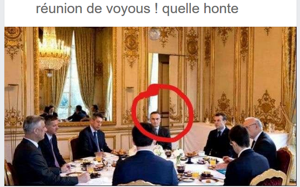 Arnaud Danjean, numéro 3 de la liste Les Républicains en train de déjeuner avec Emmanuel Macron et Hashim Thaçi, ancien chef terroriste albanais qui est aussi "le plus dangereux des parrains de la pègre de l’UCK" d'après un rapport du Conseil de l'Europe.