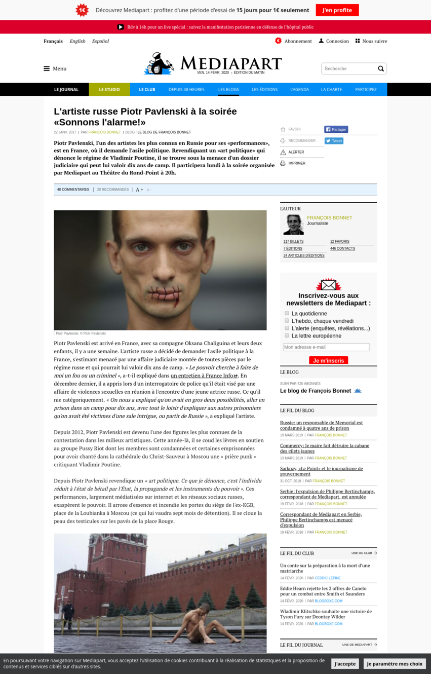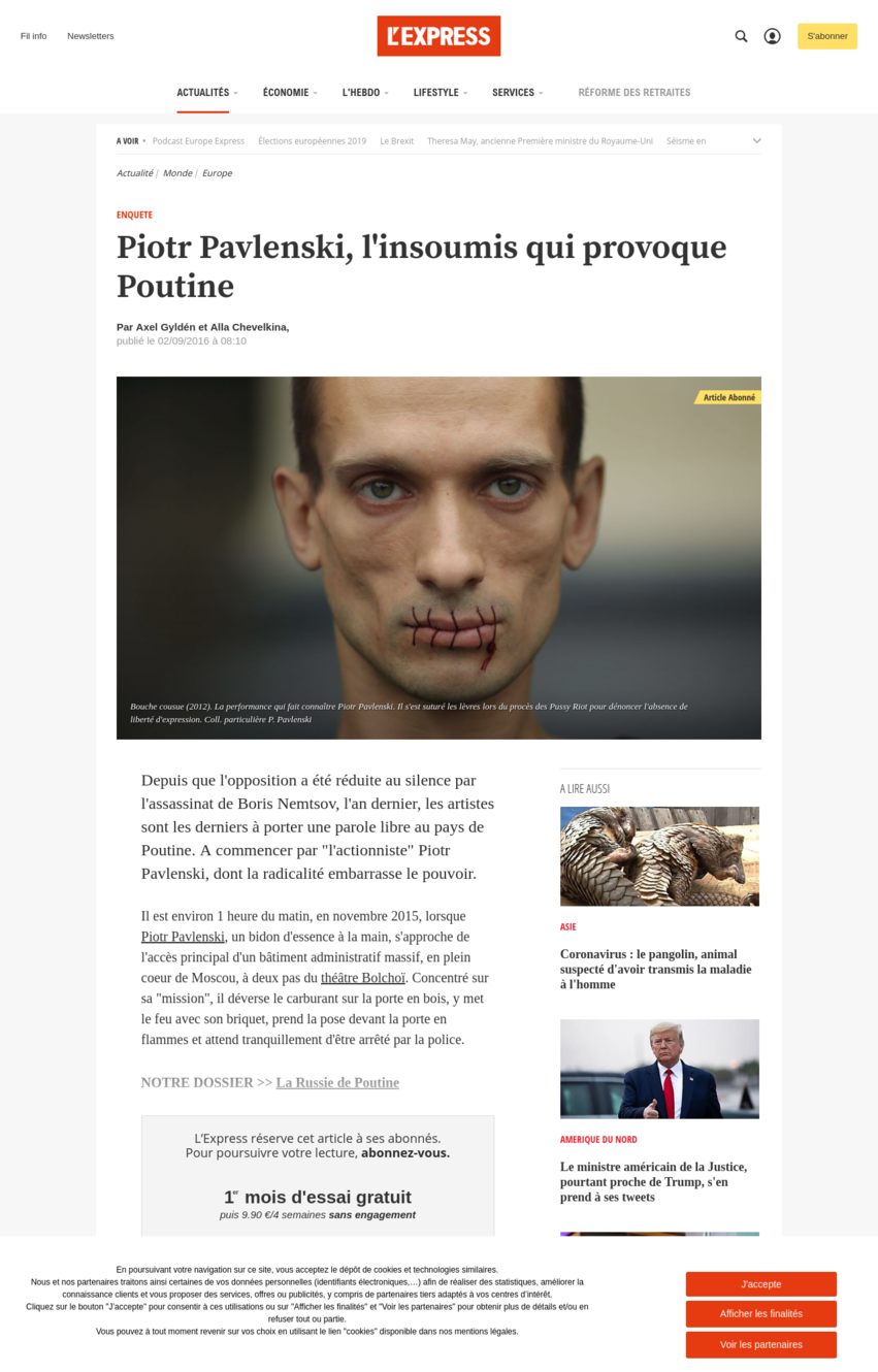 Si si, on commence à le lire. Alors que la source, Piotr Pavlenski, était le petit protégé de la bien pensance anti russe.....