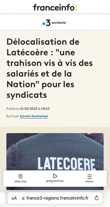 Au lieu de l'affaire #Palmade, c'est la fermeture des deux usines #Latécoère (Labège, Montredon) qui devrait faire la une des chaînes info ! L'avionneur français a une avance technologique dans le LIFI (Internet par la lumière). #Macron laisse les Américains tout rafler ! pic.twitter.com/hFqOIfubOl