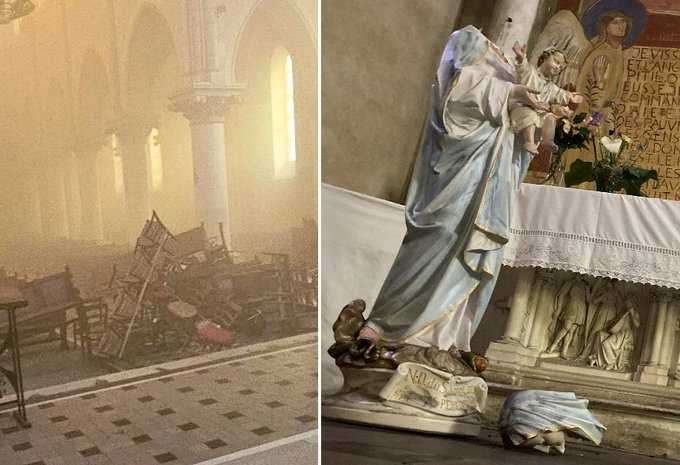 https://www.lanouvellerepublique.fr/poitiers/vienne-un-incendie-allume-dans-une-eglise-de-poitiers-et-une-vierge-degradeeMardi 14 mai 2024 au matin, ce sont des bancs rassemblés en tas qui ont été enflammés devant le chœur.