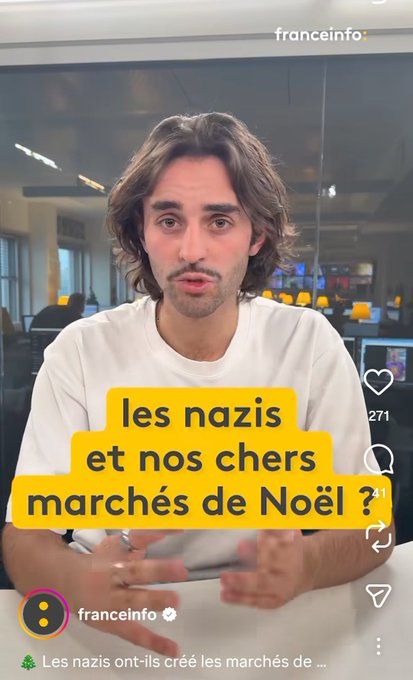 Franceinfo a raison : nos marchés de Noël ont bien un lien avec les nazis ! N'en déplaise à l'extrême droite qui souhaite réécrire l'histoire en attaquant au passage le service public. pic.twitter.com/ZkwrLcFzAt