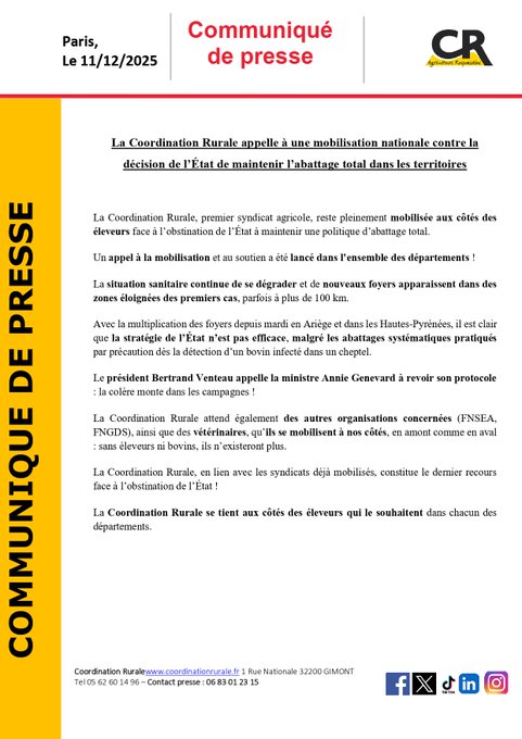 "L’État vient de déclarer la guerre au peuple français et agricole depuis l’Ariège. Demain, dans tout le pays, tout flambera de partout à cause d’Emmanuel Macron et d’Annie Genevard qui ont envoyé gendarmes mobiles et CRS pour nous attaquer." - Résistance Paysanne