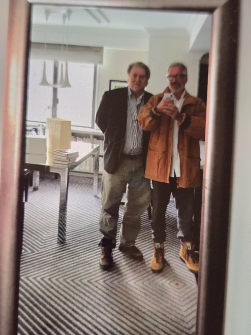 Steve Bannon directeur de la campagne 2015 de Trump avec Epstein qui le photographie. A l’epoque Epstein avait deja passe du temps en prison.