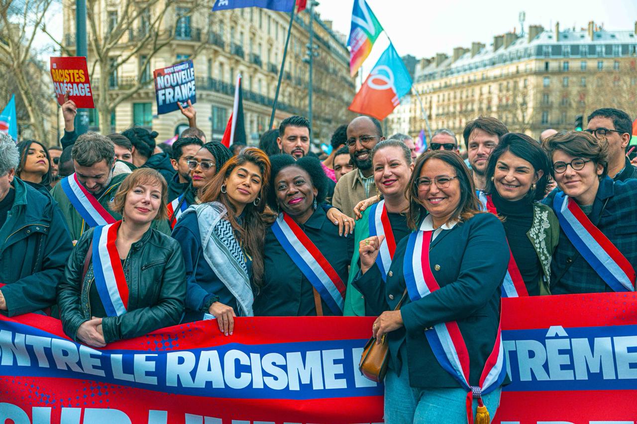 La manif semble être celle de LFI, les autres organisations sont presque occultées.