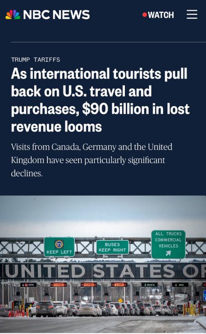 Officiellement on vous dit "La guerre commerciale absurde de Donald Trump et sa rhétorique hostile envers une grande partie du monde provoquent une baisse majeure des voyages internationaux aux États-Unis. Ce changement brutal aura un impact économique très significatif. La chute du tourisme va irrémédiablement provoquer l’effondrement des revenus américains. Les experts le chiffrent à 90 milliards de dollars pour cette année."