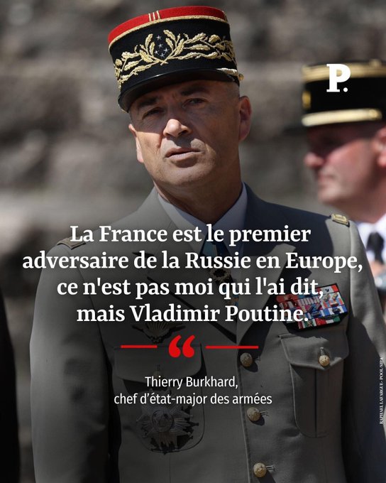 Il n’existe aucune trace d’une déclaration officielle de Vladimir Poutine dans laquelle il qualifierait la France de son « adversaire principal en Europe ». Cette formulation vient d'une interprétation faite par le général Thierry Burkhard, chef d’état-major des armées françaises, lors d’une conférence de presse tenue le 11 juillet 2025 à Paris euronews+9TF1 INFO+9Dailymotion+9.