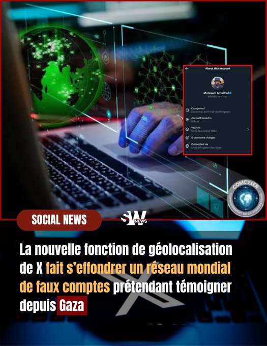 X donne désormais le lieu géographique ou est supposer être localisé le propriétaire du compte. Sauf que des petits idéologues de bac à sable s'amusent a scruter les comptes de ceux qu'ils estiment illégitimes en exposant des lieux géographiques de leurs comptes. Aussi infantile, tu ne ferais pas mieux.