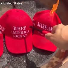 La fin de l'illusion. Certains américains déçus montrent sur les réseaux sociaux, la fameuse casquette MAGA, mise au feu !
