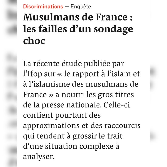Quatre associations musulmanes ont déposé plainte contre l'Ifop, dénonçant le manque d’objectivité d’une étude sur les Musulmans de France, fondée sur des « questions orientées » et « mettant en avant des résultats minoritaires à des fins polémiques ».