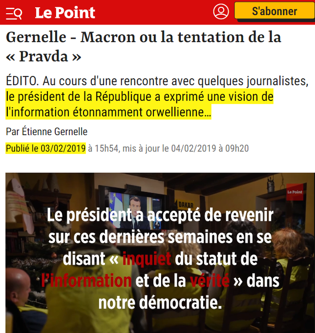 Emmanuel Macron a réfuté vouloir instaurer un "label d'Etat" pour la presse ou un "ministère de la Vérité", face aux accusations des médias Bolloré, de la droite et de l'extrême droite qui voient dans ses initiatives contre la désinformation une dérive "autoritaire" voire… pic.twitter.com/bV8zoNNLMN